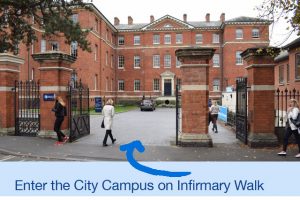 Driving up castle street, turn right into Infirmary Walk and then immediately right again into the City Campus.